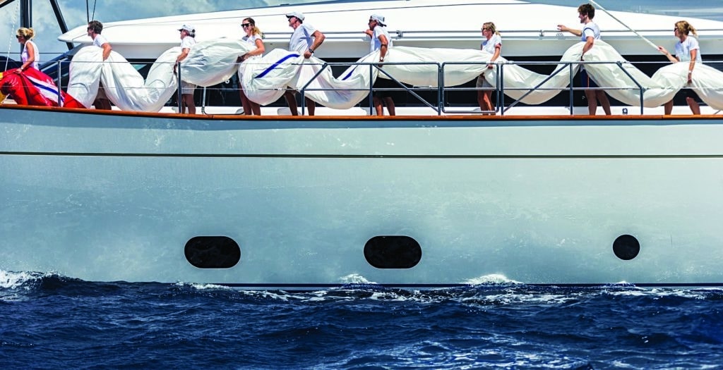 Racing yachts this large requires special skills, not only for the crews that wrestle thousands of square feet of sail area, but also for the tacticians and helmsmen, who have specific right-of-way rules to avoid collisions among these unwieldy craft The boats are manned by the new and old guard of the America’s Cup, Volvo Ocean Race, and other big grand-prix programs. Their sail handling skills and experience are required in this increasingly competitive scene.