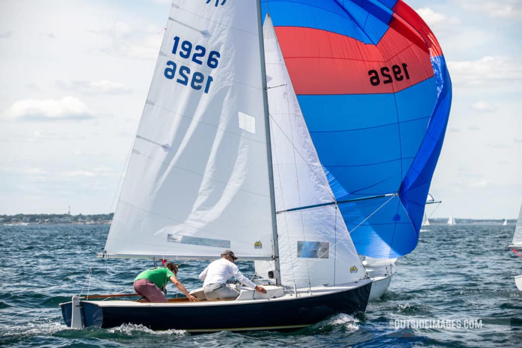 The father and son duo have been sailing the Rhodes 19 together for nearly 10 years, but the elder Taylor won Marblehead Race Week in the 1980s. “It was a completely different thing back then, and the talent level is nowhere near where it is right now,” he said. “It’s very high with college sailors joining the fleet and the one thing we like about the boats is that they are all pretty much equally slow, which keeps the racing close. If you do it right you gain a few lengths here and there, but that’s about it.”