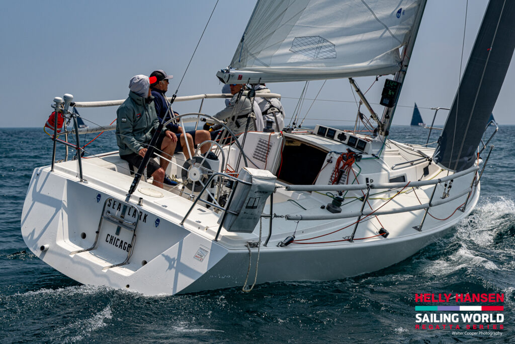 The small boats of the regatta, tucked closer to shore off Montrose Harbor, enjoyed a full series of races for ILCA 6 and 7 sailors. Roman Plutenko was top ILCA 7, and Emilio Bocanegra Lopez went undefeated in the ILCA 6. Macatawa Bay YC’s junior racing team, with Lucas Nykamp on the helm, came on strong on the final day to win Youth Keelboat Invitational title. Macatawa’s team also won SWRS invitational in Detroit a week earlier.