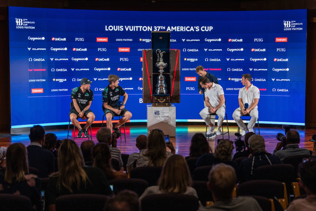 Those statements will have to be made on the water, as the opening press conference was a cordial affair between the starting helmsmen—Peter Burling and Nathan Outteridge for Emirates Team New Zealand and Ainslie and Dylan Fletcher for INEOS Britannia. The Cup was carried into the auditorium of Barcelona’s World Trade Center and ushered in with a proper Maori Haka, a war dance that Ainslie and Fletcher were greeted to as they stepped onto the stage.
