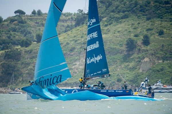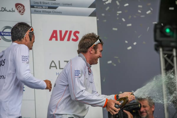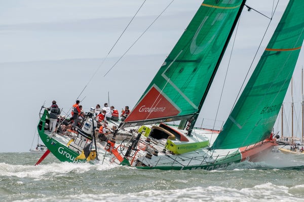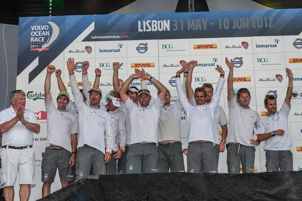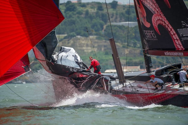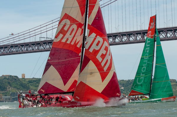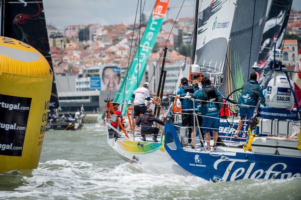 Current overall leader Groupama took first place, while PUMA battled back for a well-deserved second place finish. CAMPER (with Emirates Team New Zealand) snagged the last podium spot, while overall second-place boat Telefonica came in last. Telefonica's poor finish resulted partially from a penalty on PUMA immediately after the start and partially from a snapped masthead halyard. Photos by: Ian Roman, Paul Todd, VOR media crewmembers Diego Fructuoso/Team Telefonica, Yann Riou/Groupama Sailing