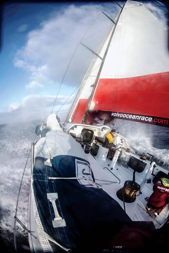 In July, with no official sponsorship announcement made, they went about getting up to speed on the VO65 under the direction of Michel Desjoyeaux, aka “el profesor,” one of France’s most successful ocean racers under the name Team Campos. It’s no coincidence that Desjoyeaux also helped Martinez and Fernandez hastily prepare for their 2010 Barcelona World Race (doublehanded, around-the-world) in which they finished second overall.