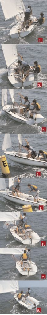It can be tough to go through a clean set after an exausting upwind leg. If you’re prepared, though, the windward mark is a great spot to pick up boatlengths on the competition. From our April 2006 issue