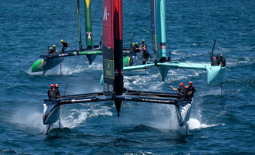 Slingsby commented, “The hardest part is that Glenn hasn’t sailed in those conditions before. He hasn’t sailed with the 18-meter wing, T-foils, or any of that, so it’s really about supporting him and helping him through it. Goobs was in the coaching box, sitting there calling different things and bringing us into the start — he did a great job helping out. Glenn did such an amazing job stepping in on a couple of days’ notice, and getting a result like that for our team and his country. He’s stoked to be racing for Australia, so it’s an awesome result for us and for him.”