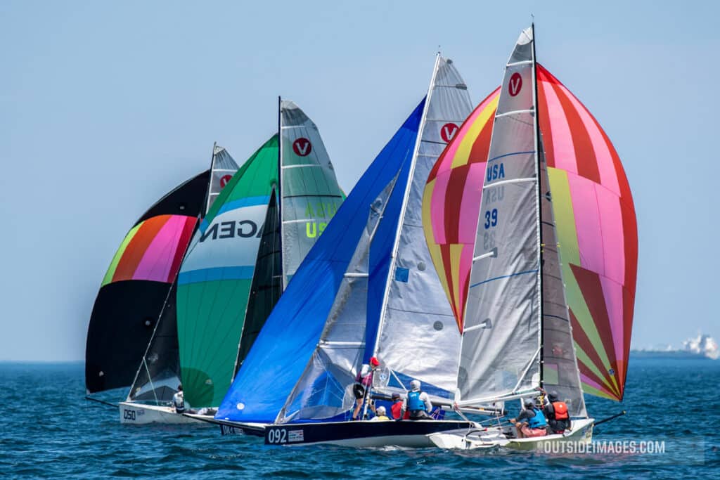 The final day of the 2019 Helly Hansen NOOD Regatta at Marblehead Race Week reached a dramatic conclusion across multiple fleets. With lighter winds and