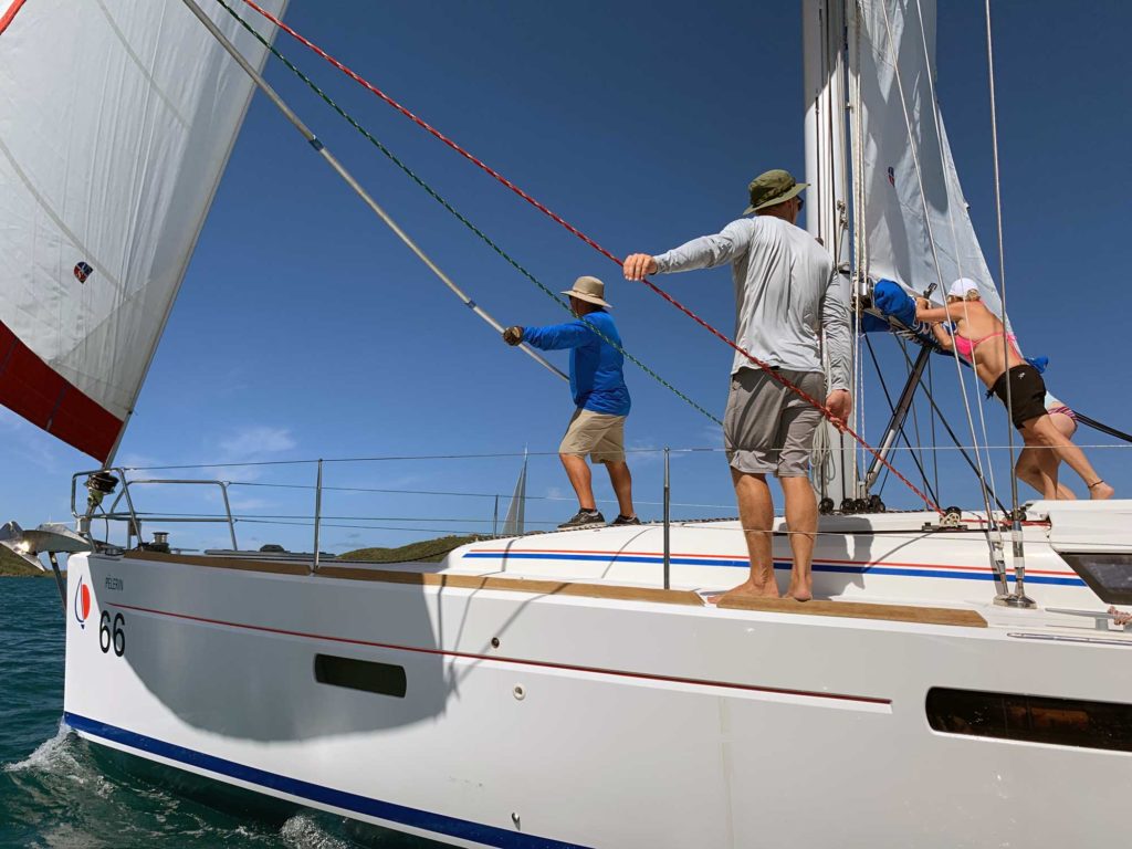 Their solution was to simply get a bigger boat—duh—and a mothership with 11 of their friends. While the Caribbean Championship has traditionally been a strictly one-design experience, a limited monohull inventory at Sunsail’s Tortola base and a larger-than-ever fleet for the Championship has opened up the opportunity to include larger boats, which will be scored using a reliable and proven scoring scheme, which regatta PRO Dick Neville will deftly apply.