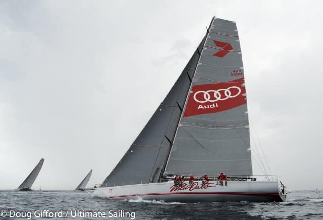 But the pressure got better later, with Wild Oats navigator Nick White reporting “Right now we’re averaging around 19 knots and aiming straight at the Barn Door – Hawaii. It’s fantastic downwind sailing. You couldn’t ask for much better…except we’d like some sunshine instead of heavy cloud.