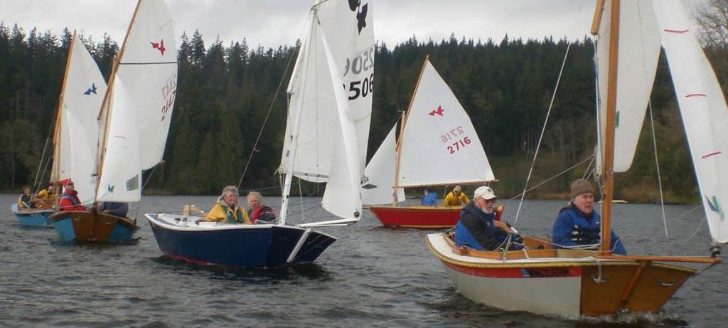 The Pacific Northwest is blessed with countless places for Pelican racing. It could be Holmes Harbor on Whidbey Island or Gig Harbor on the Kitsap Peninsula. These are saltwater venues are protected with verdant shores and amazing wildlife that may even include whales. Freshwater venues include Lake Sammamish, Lake Union in downtown Seattle, Lake Washington, Lake Ballinger and Cranberry Lake. Over the last 50 years it would be safe to say they’ve launched and raced in scores of both freshwater and saltwater venues, and eaten salmon in dozens of backyards.