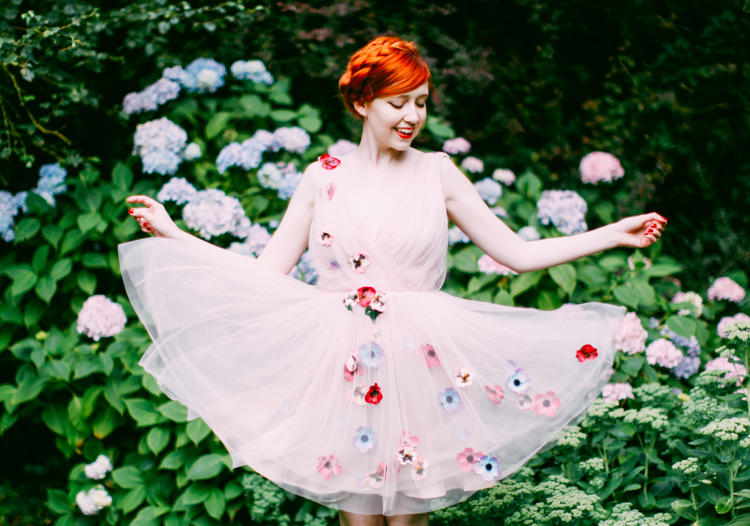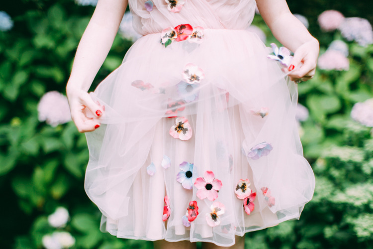 A Clothes Horse is another one of my favorite blogs. The dress featured in these photos has hand sewn flowers on them that Rebecca (the owner of A Clothes Horse) stitched on herself. I absolutely love this idea and think the flowers layered with the tulle look absolutely gorgeous.